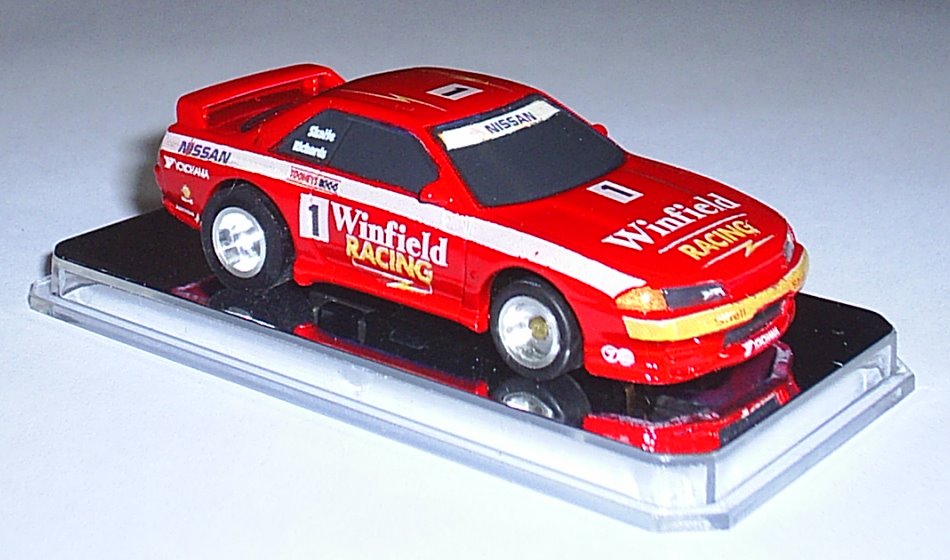 Love it or hate this was a awesome race car. Just killed the opposition! And I have always been a fan of Jim Richards. The car is based on the Bathurst winning car that Richards/Skaife drove to victory. Got boo'ed by the Holden, Ford fans and the rest of the opposition as they walked onto the podium to collect there trophies. Jim Richards got the microphone and said to the crowd "You are all a pack of bastards". Body started life as a beaten up AFX Tomy blue Calsonic Skyline. Prepped and paint red. Decals are scaled down 1/24 or 1/32 plastic model decals. They did not fit and had to be modified. Next job is some 5 spoke white rims to match the wheels on the real car. Happy with the results after this first attempt.