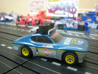 hi Grant, glad to finally meet you, seen you around trade me and think ive even bidded against you hahahaha and you won, yeah my tracks coming along slowly, i started out collecting afx track for my layout then moved onto tomy track after getting sick of the tabs breaking, finally ive settled on Aurora old school track, cost me a arm and a leg over the time as it doesnt come up very often on trade me, im not a fan of t-jets and only have 2, i mainly go for the AFX, with the dollar not doing so well against the US i havnt got any new cars for awhile now, i enjoy doing custom afx cars too now and then, heres a pic of 2 capris i decaled up and also placed roof racks off a escort rallye, and some others, cheers jase