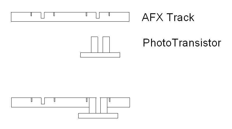 It is alot easier to use phototransistors that look like LEDs. Then all you do is drill a 3mm or 5mm hole in the track poke the LED through from underneath so It doesnt protrude above the track then build a "gantry" avove the track with a couple of LEDs in providing light onto the phototransistors. I use this method very successully with the laptimer2000 software. Ill post some pics after the weekend. You might have trouble getting the configuration in the picture above will work because of the small size of the slot pin to break the light and the depth of the pin in the slot....hope this is helpful to you guys.