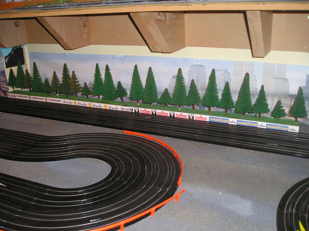 Like the backgrounds! Andy, what about using train controllers to power the slot car sets? Variable speed sort of thing.